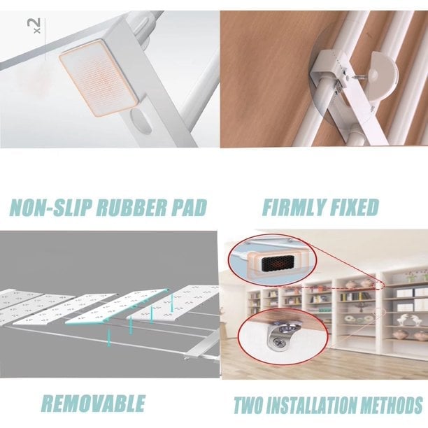 EASY TO INSTALL: No tools needed, no damage to your decorative wall, adjust the length according to the space, then tighten the screw, finally adjust fine-tuning feet, shake the product and confirm that it is fixed, just select strong sides ,such as tiles, walls, wardrobes, etc.