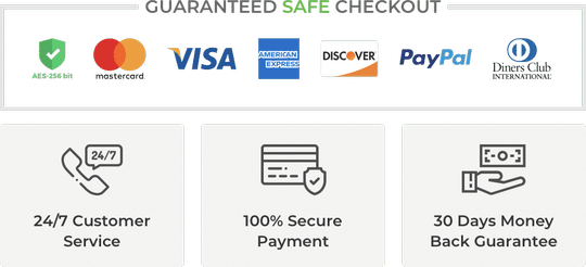 The Checkout Process is Guaranteed to be 100% Safe and Secure with Visa, Mastercard, AMex, Discover, Apple Pay or PayPal.
