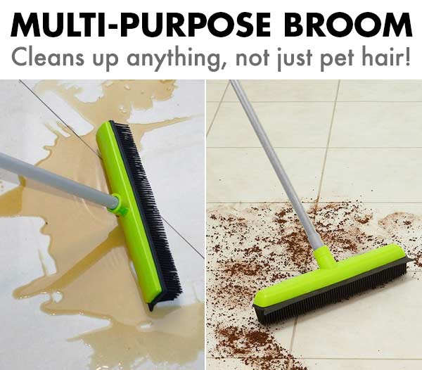 That’s where a pet hair broom comes in.   effortlessly lifts and collects dog hair – they put your traditional broom to shame!