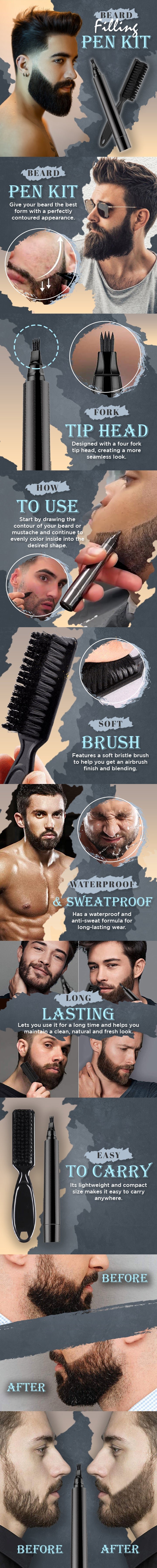 1* beard filling pen kit, Include 1*beard filling pen, 1*beard brush (Black/Brown)