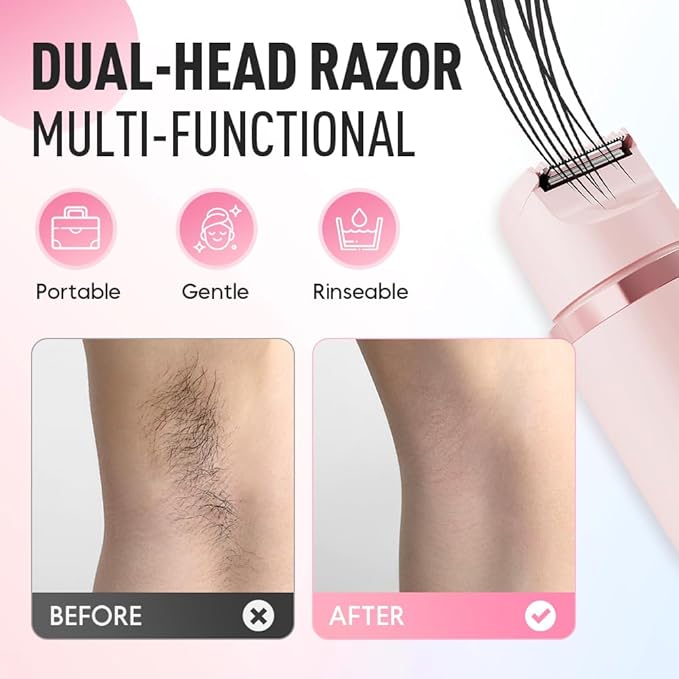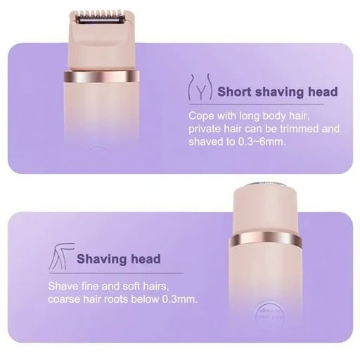 Dual Head Functionality: The dual head design offers effortless trimming and shaving, making it perfect for delicate areas like the bikini line, underarms, and legs.