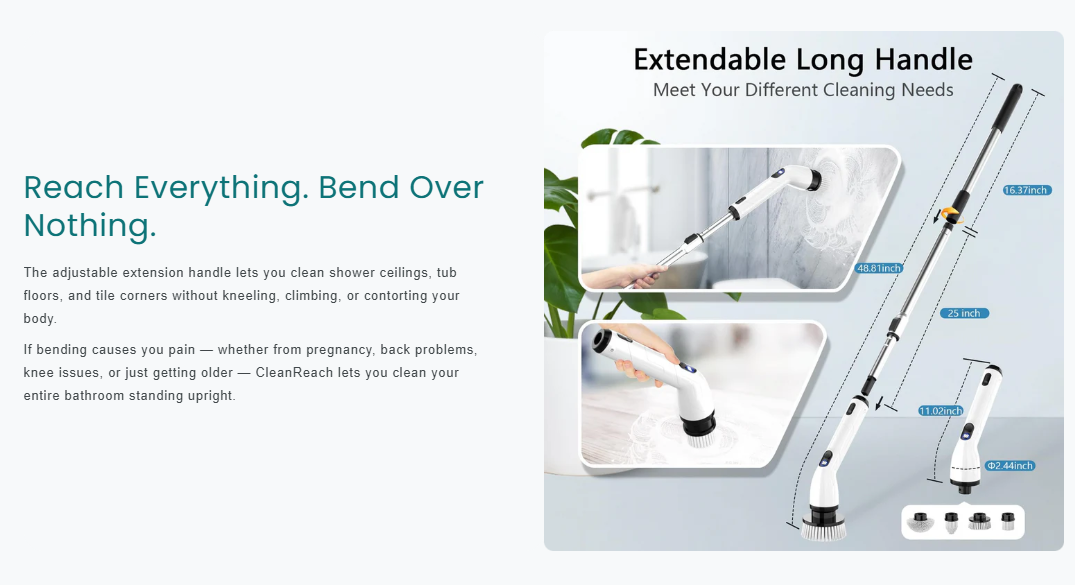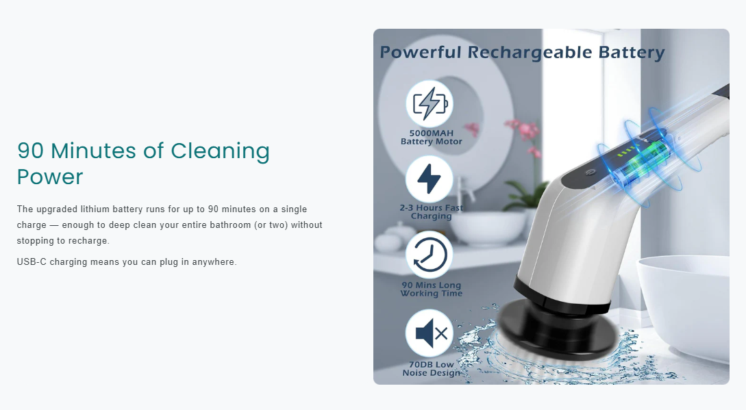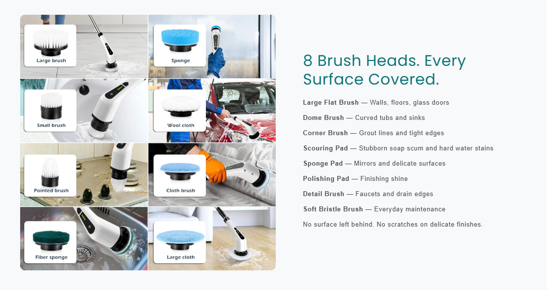 Deep clean every surface without bending,kneeling, or scrubbing by hand-Spin Scrubber